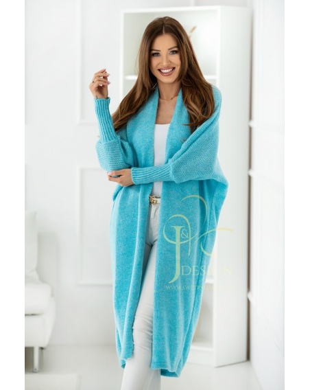 Długi sweter kardigan Lea narzutka Polski producent J&K premium - turkusowy