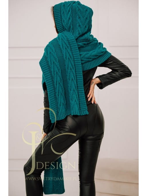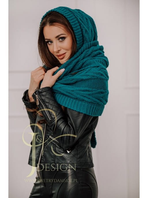 Długi szal komin z kapturem Cleo Polski producent J&K premium - morski
