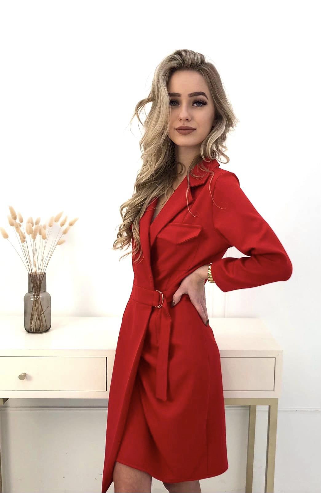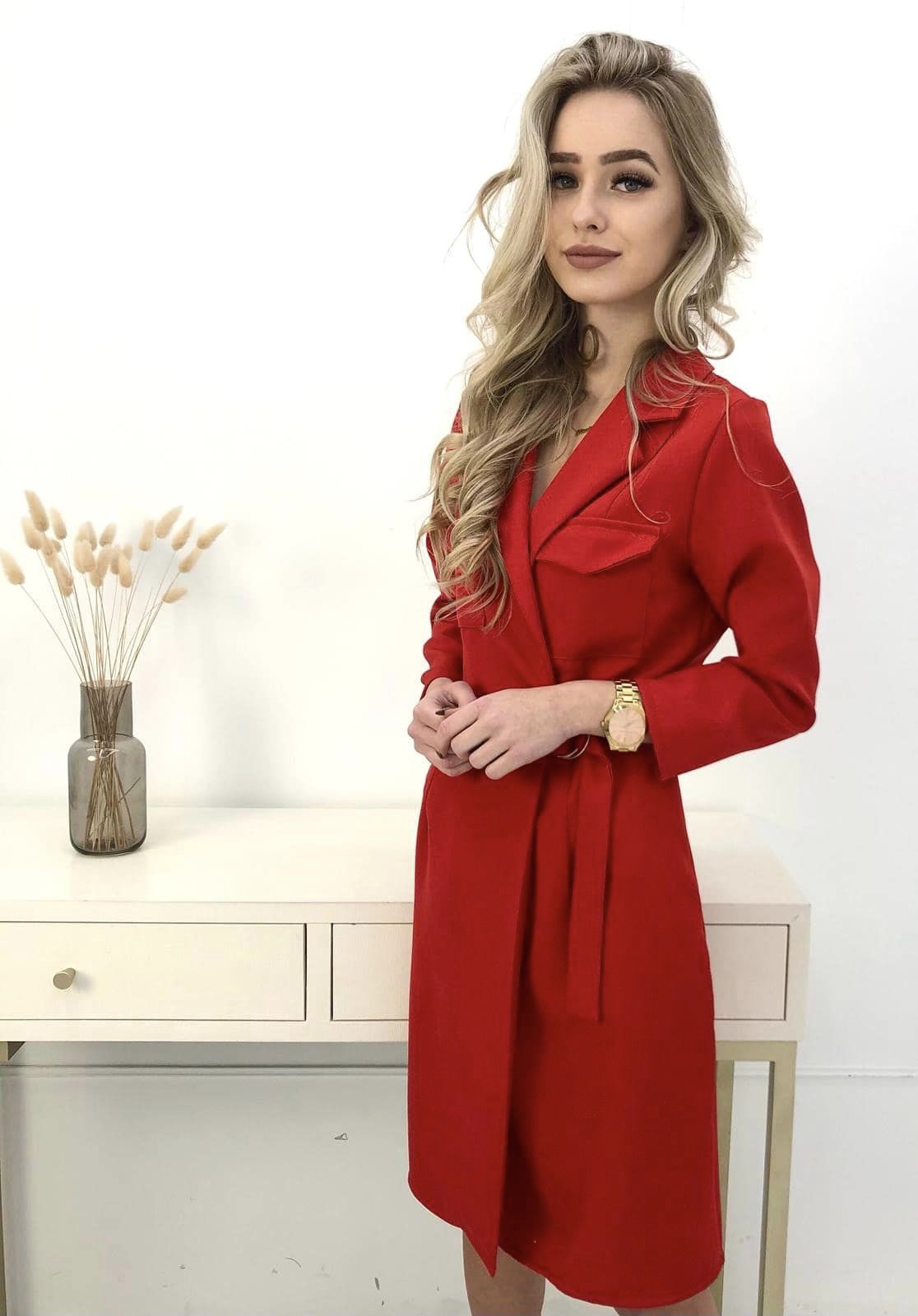 ELEGANCKA KOPERTOWA SUKIENKA ALESSA Z RĘKAWEM 3/4 BY MIELCZARKOWSKI POLSKI PRODUKT - CZERWONA