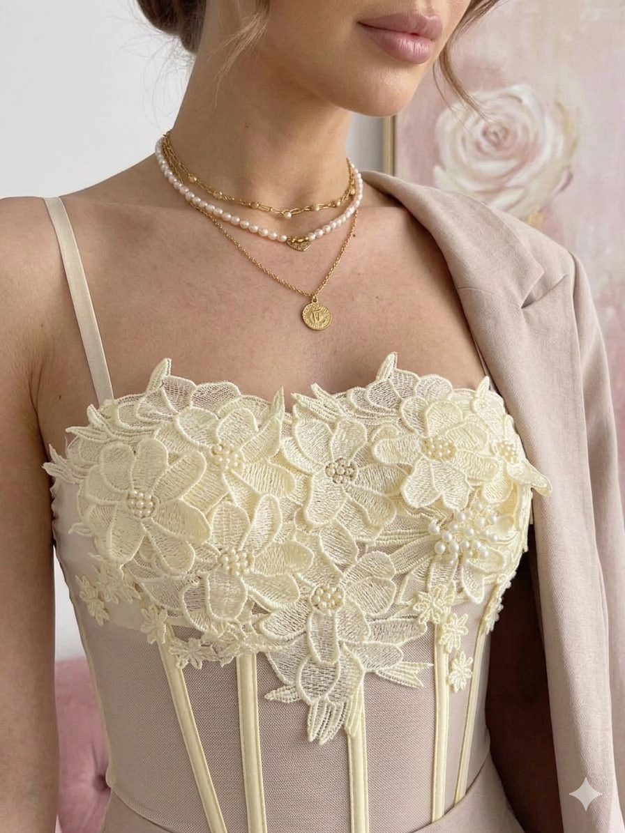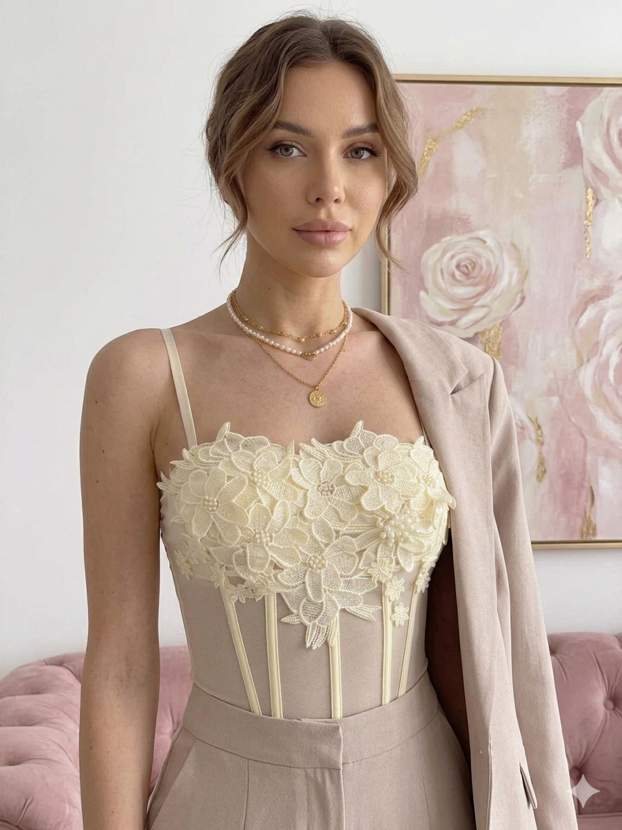 Elegancki Gorset z Kwiatami Top pod garnitur Collet modelujący z fiszbinami - zółty bananowy