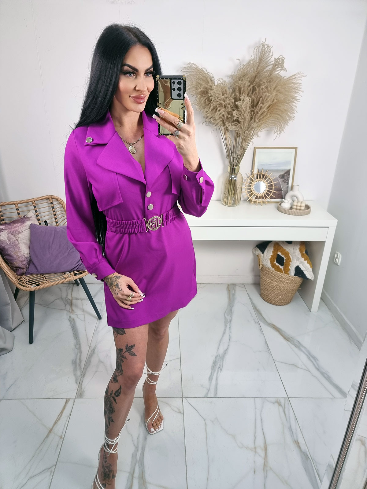 Elegancki Kombinezon Komplet Lotus z paskiem i złotą klamrą - fiolet
