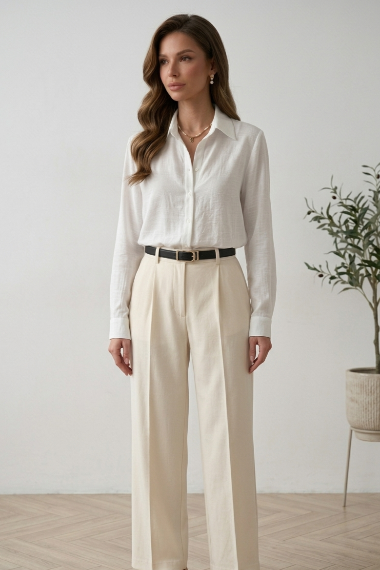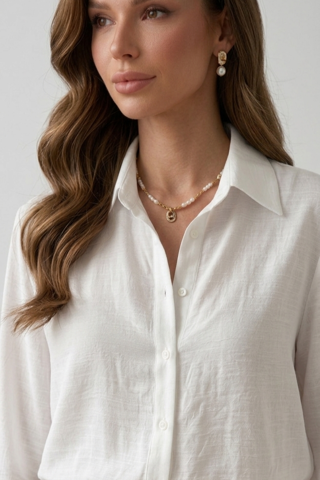 Klasyczna Elegancka Koszula Roma na guziki Bawełna Jedwab - biała