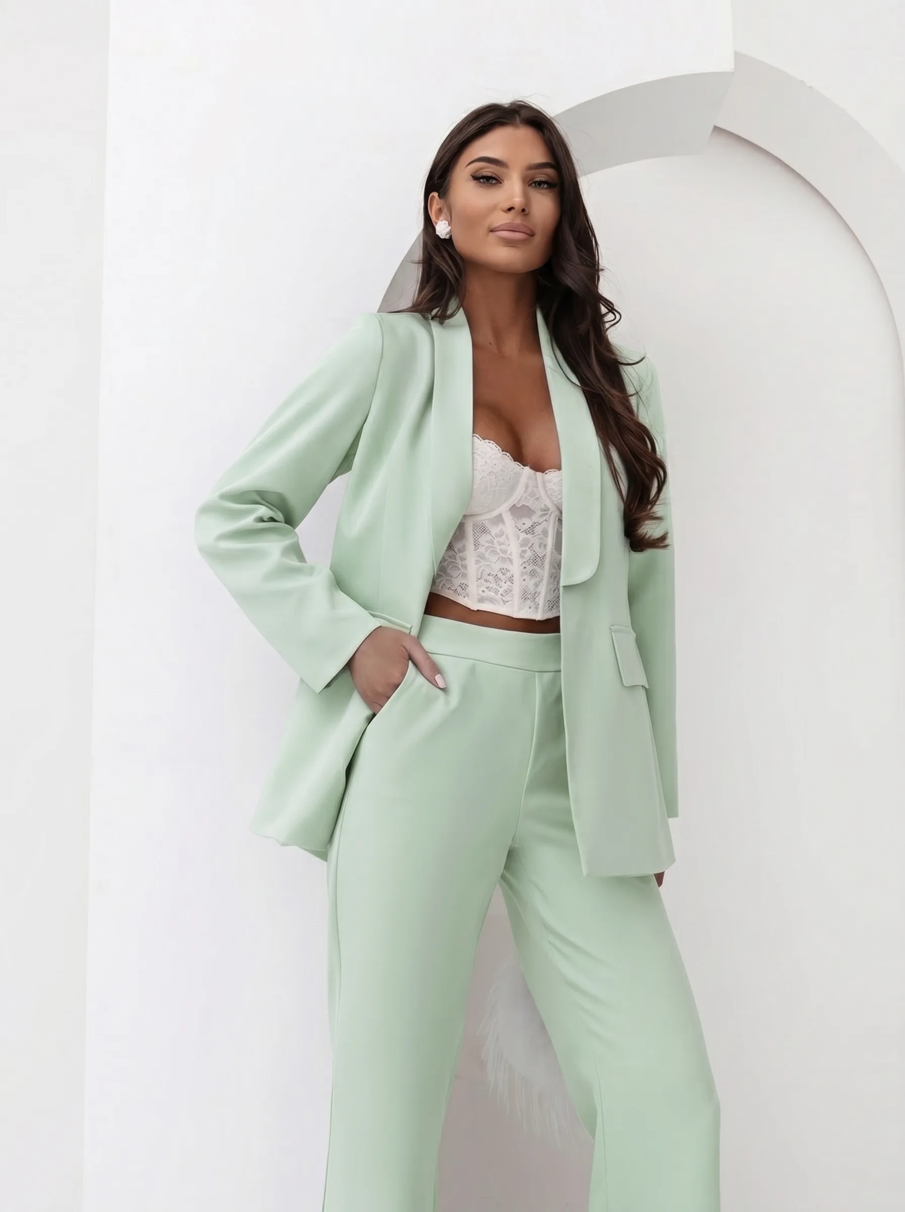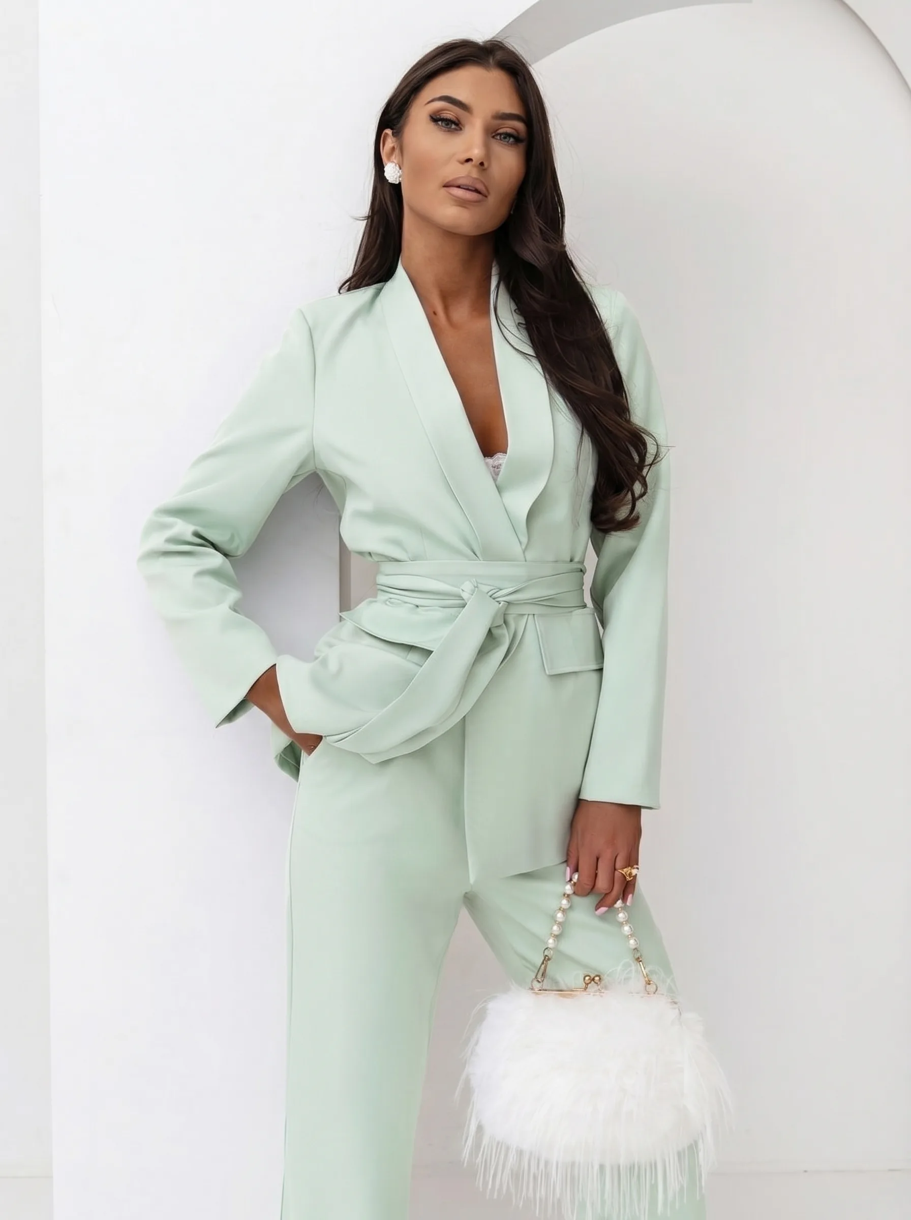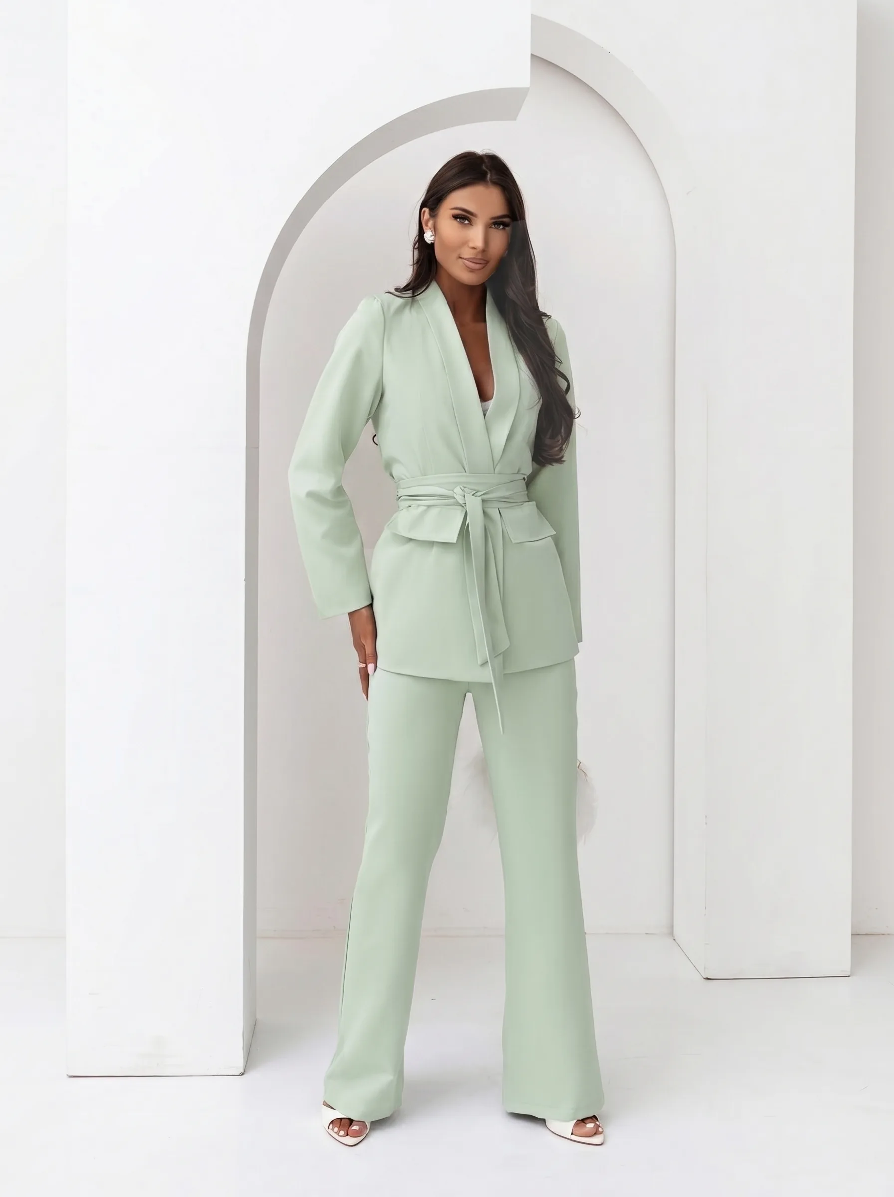 Klasyczny damski garnitur komplet z paskiem Tessa - jasna mięta