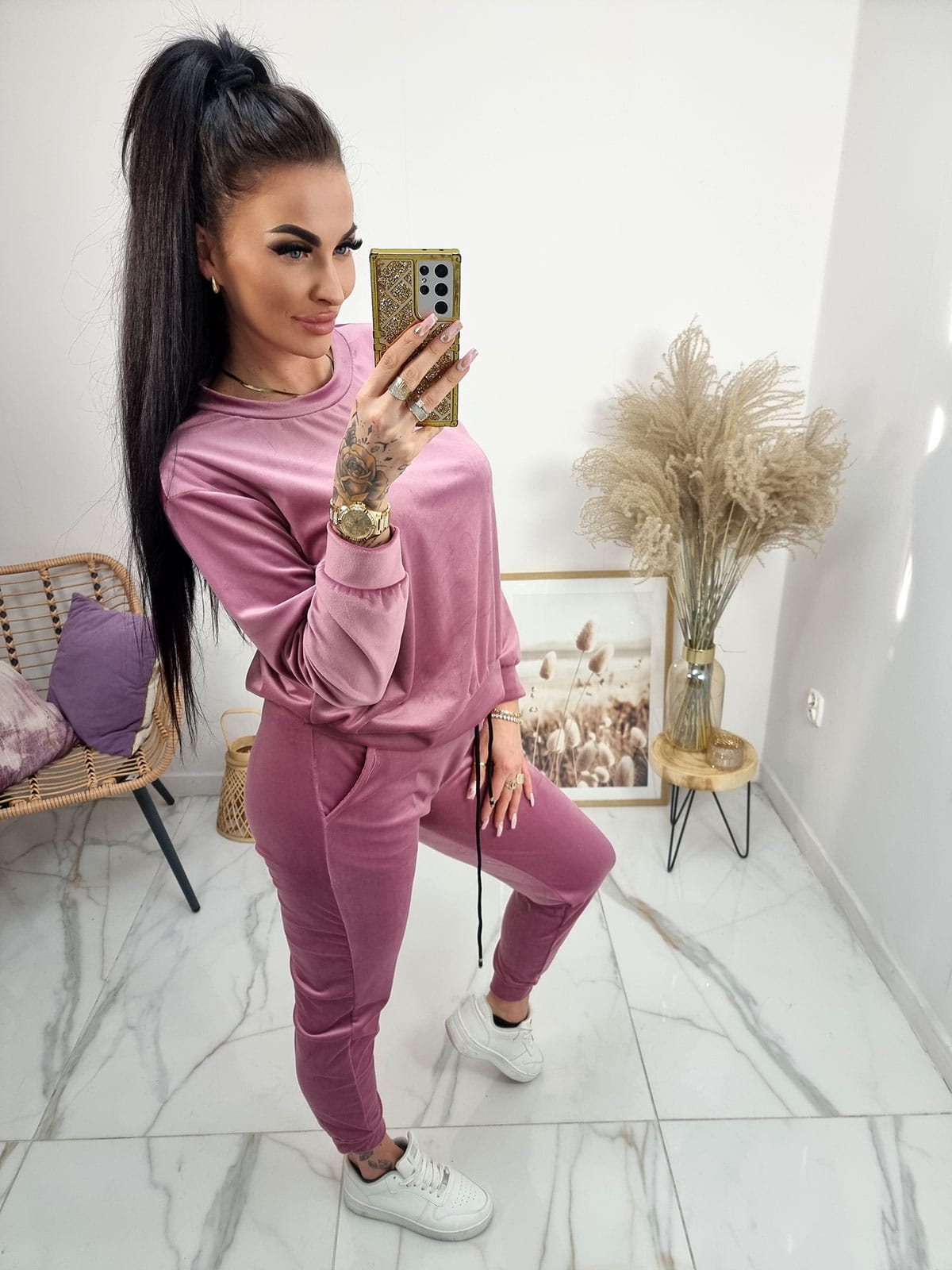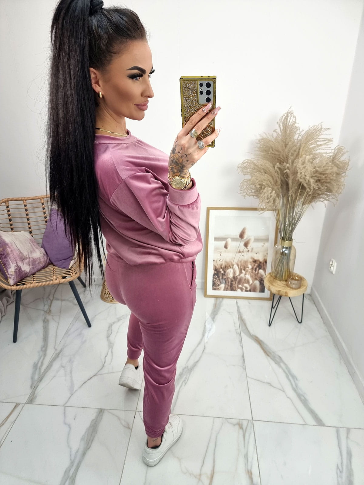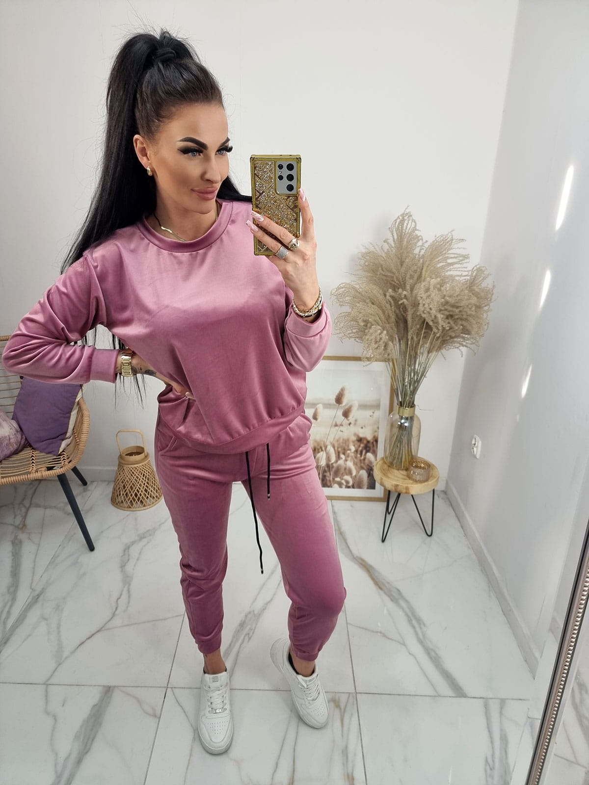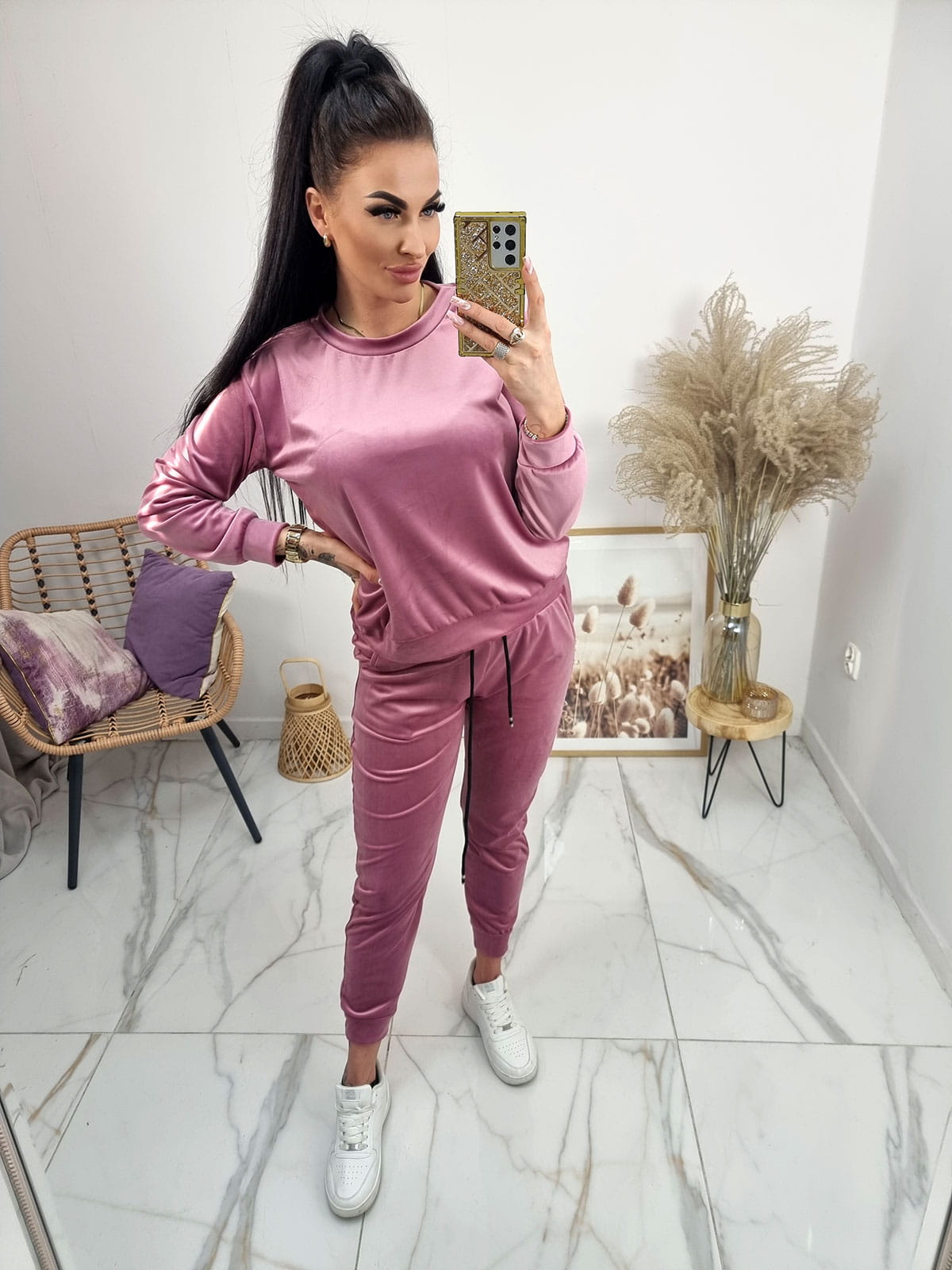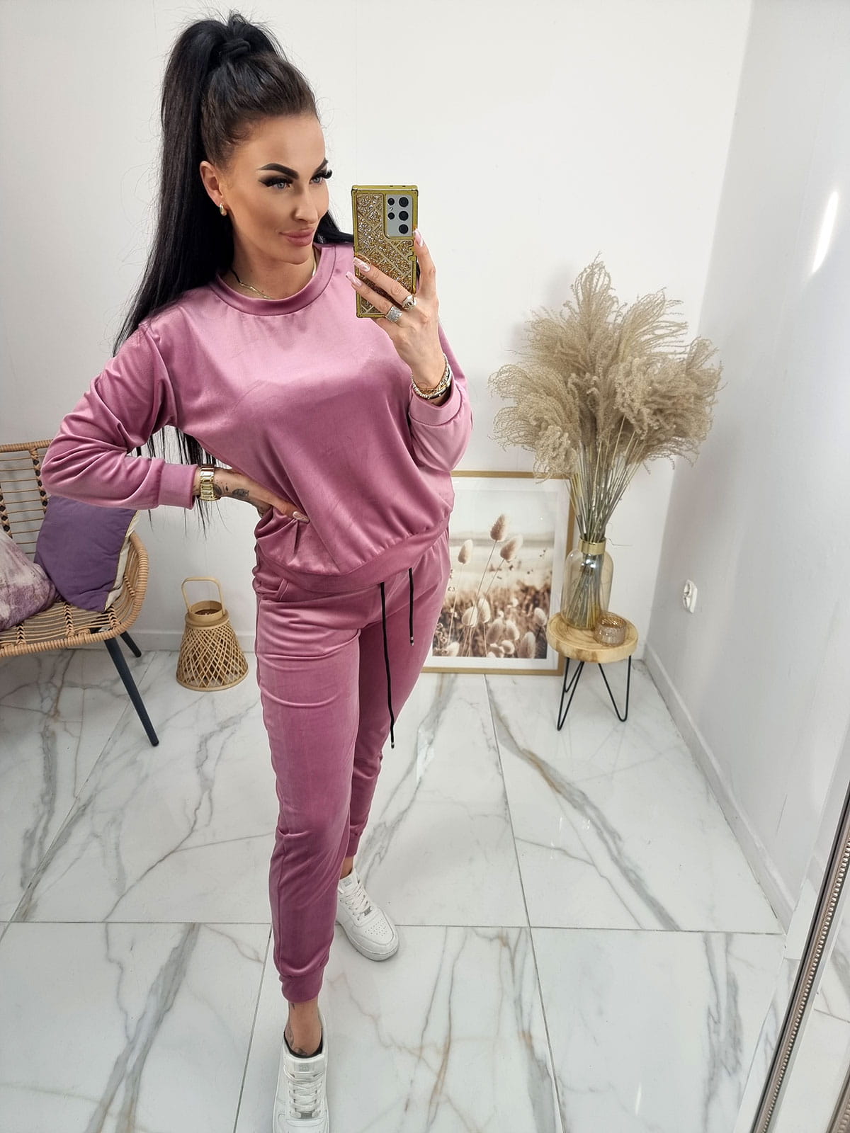 Klasyczny dres welurowy Amma - uniwersalny - pudrowy róż