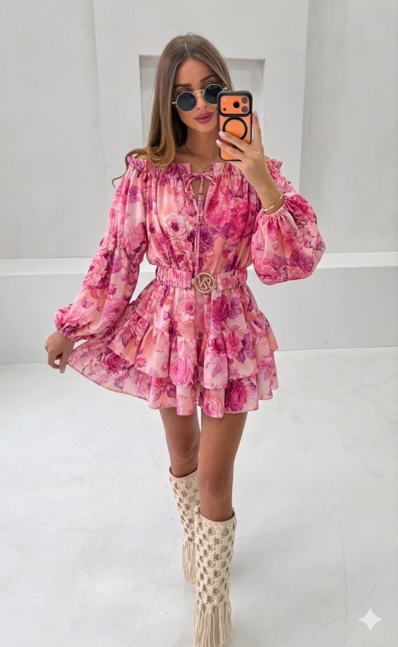 Kombinezon Vasari Rodos z paskiem i złotą klamrą - różowy w kwiaty