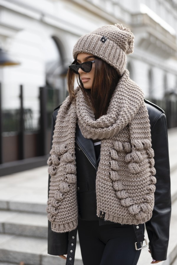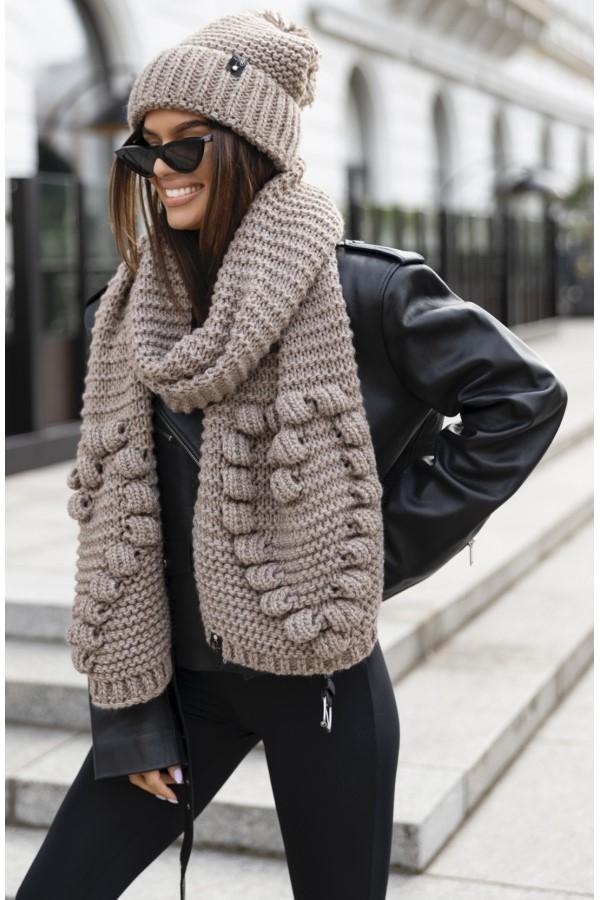 Komplet 2- częściowy Montana czapka + szalik z motywem serca polski producent J&K premium - cappuccino