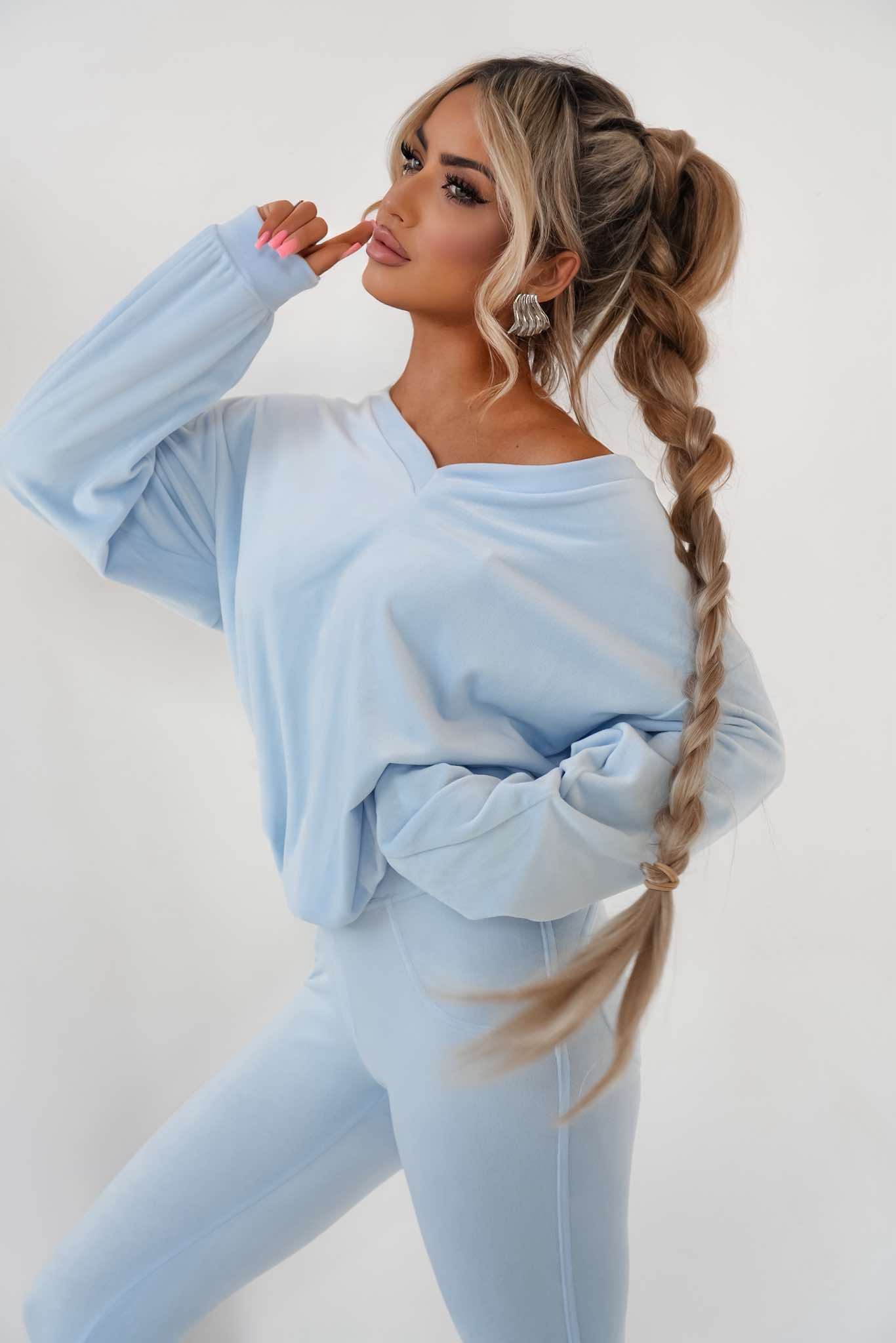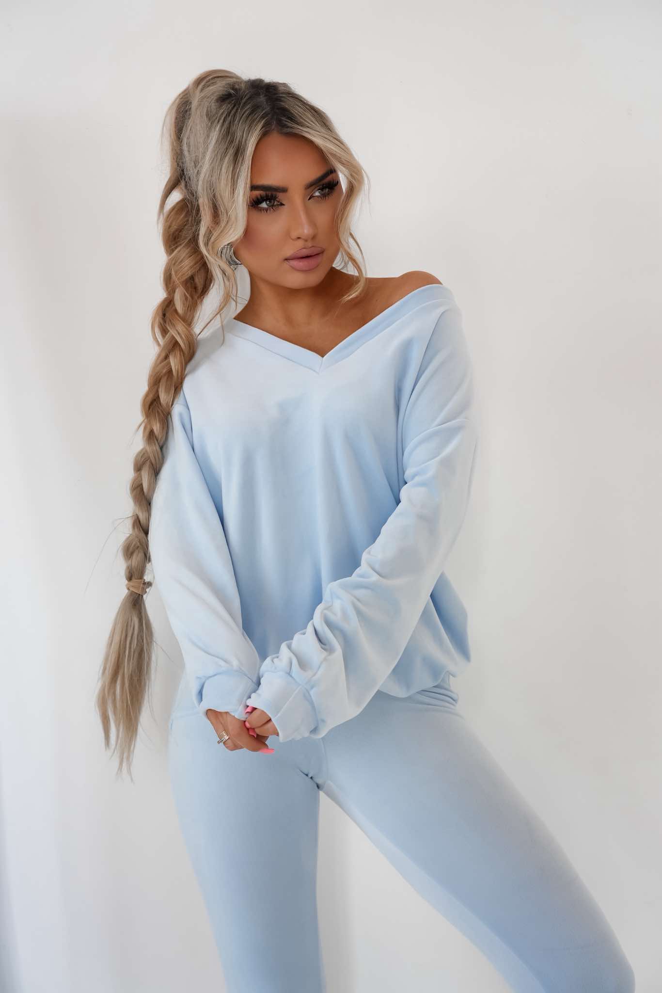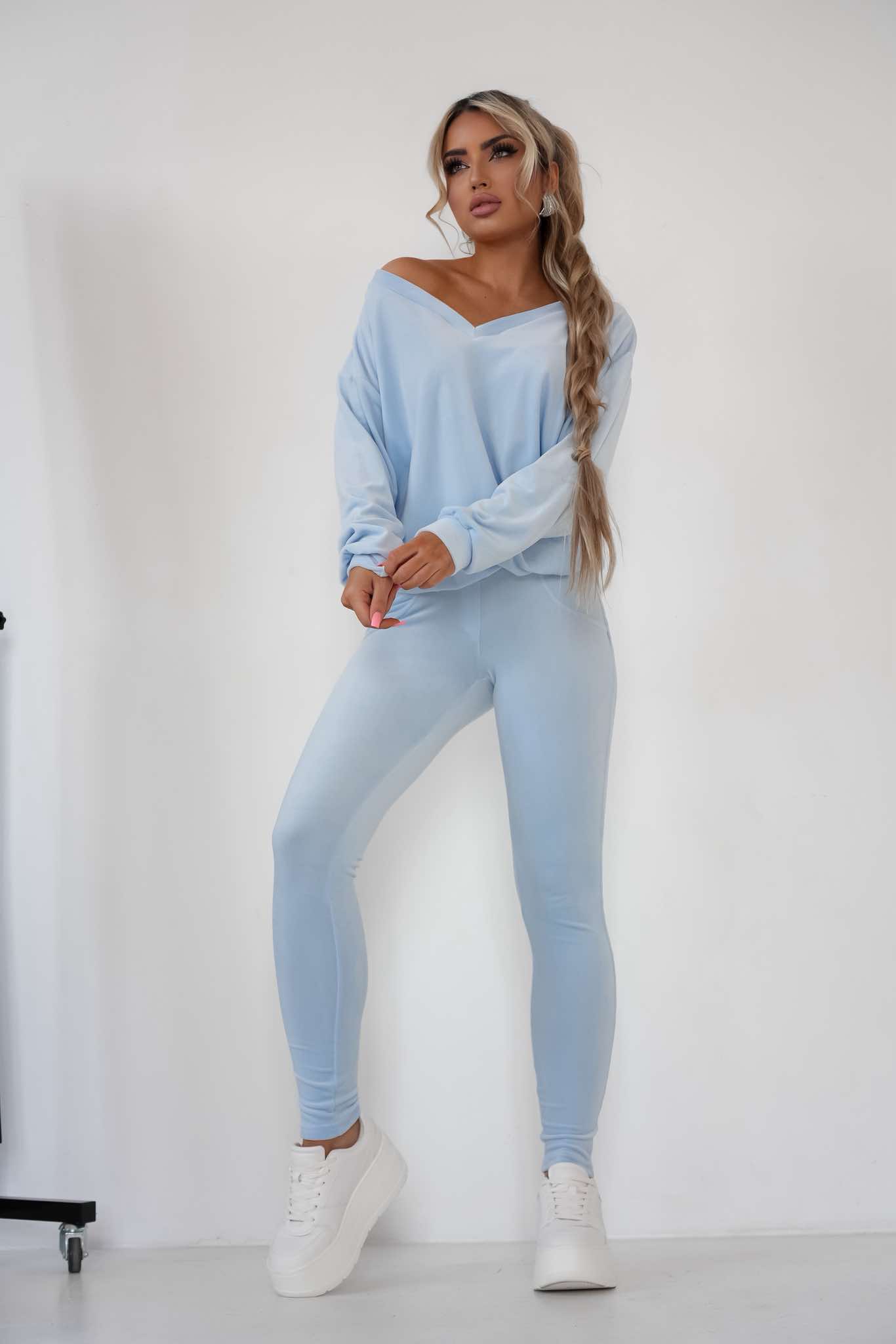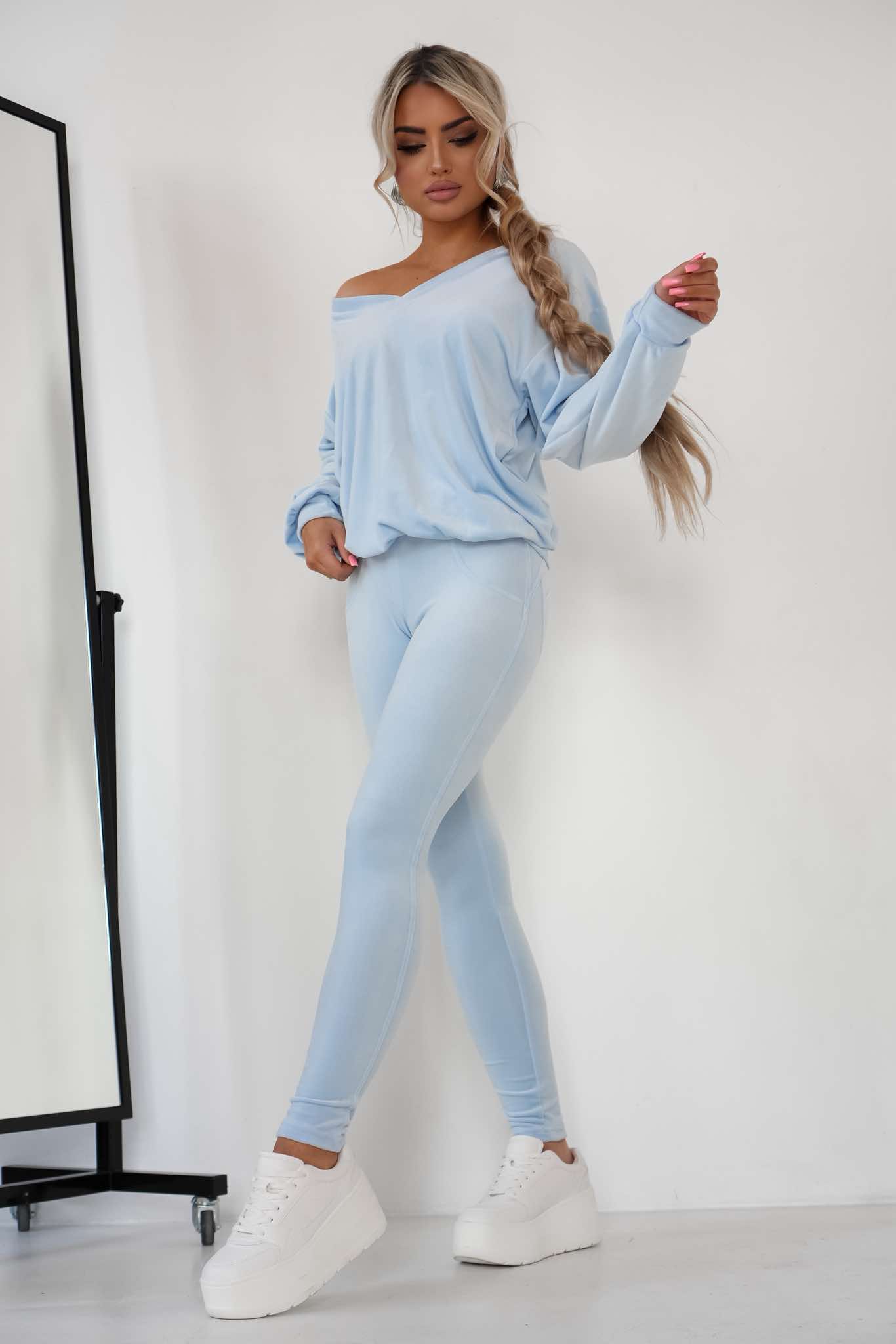 Komplet dres welurowy Mielczarkowski bluza w serek + legginsy Polski produkt - baby blue