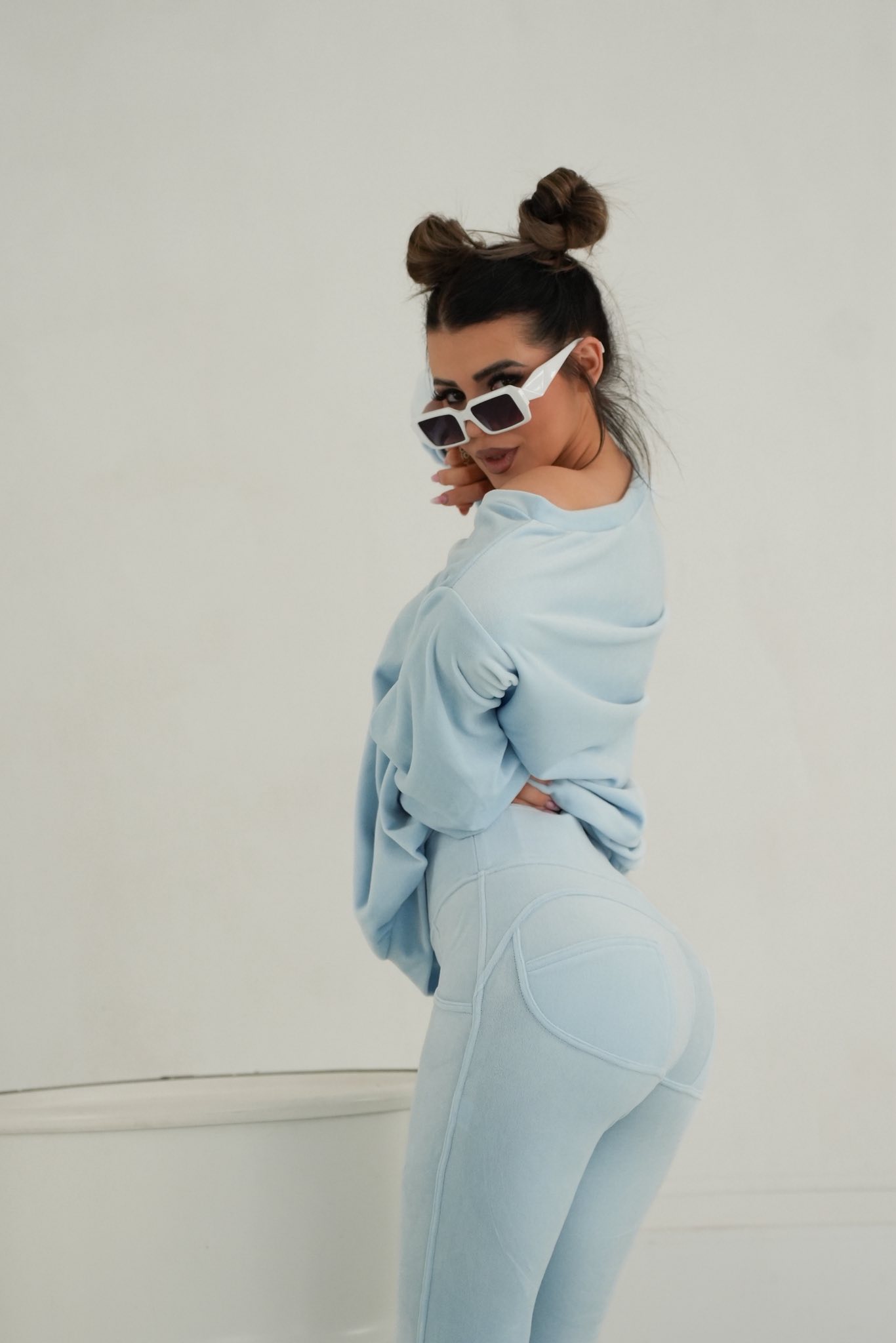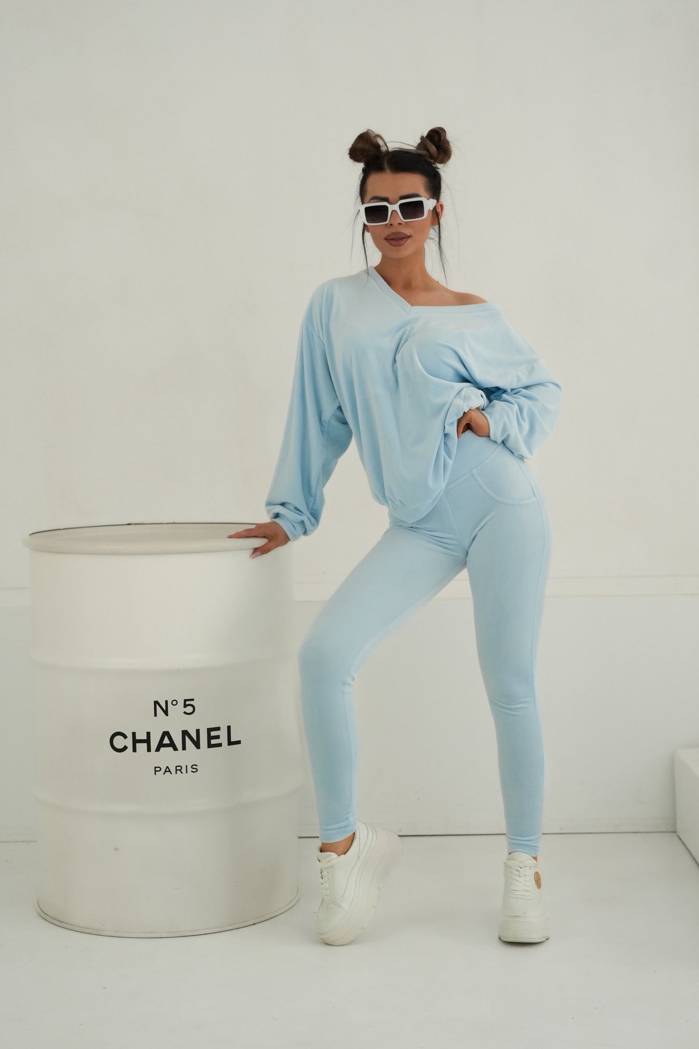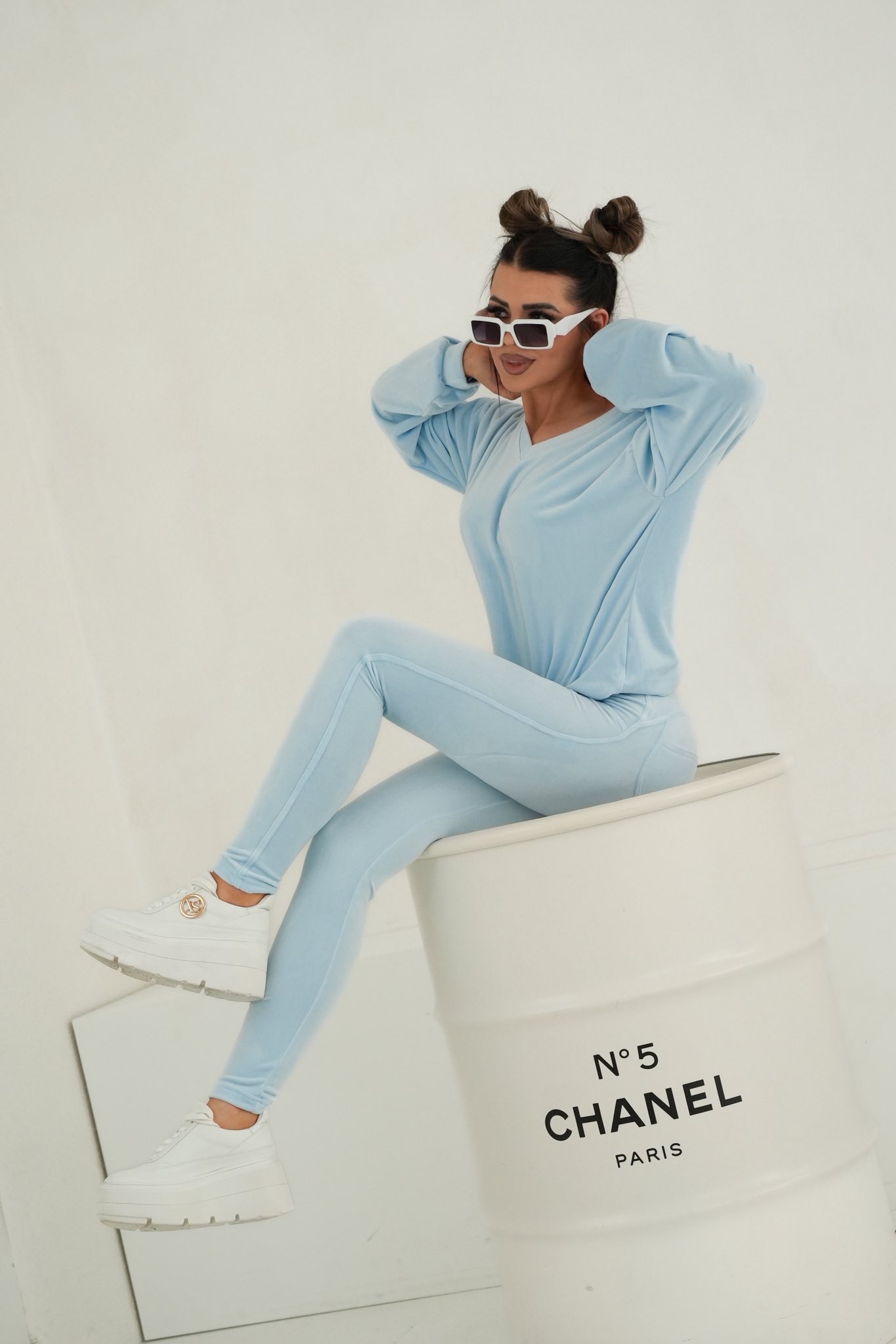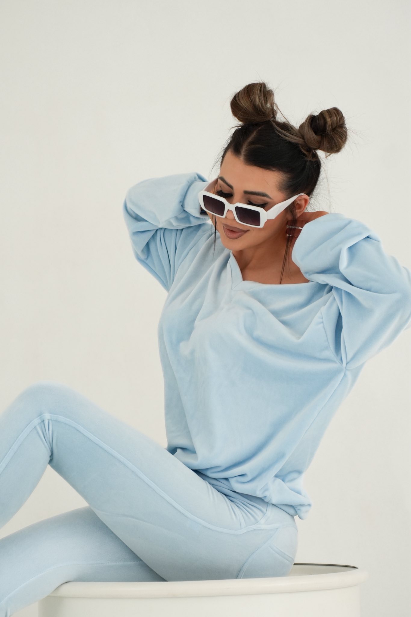 Komplet dres welurowy Mielczarkowski bluza w serek + legginsy Polski produkt - baby blue