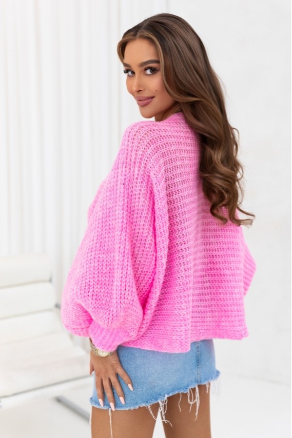 Krótki ozdobny sweter Cross z szerokimi rękawami polski produkt J&K premium - różowy