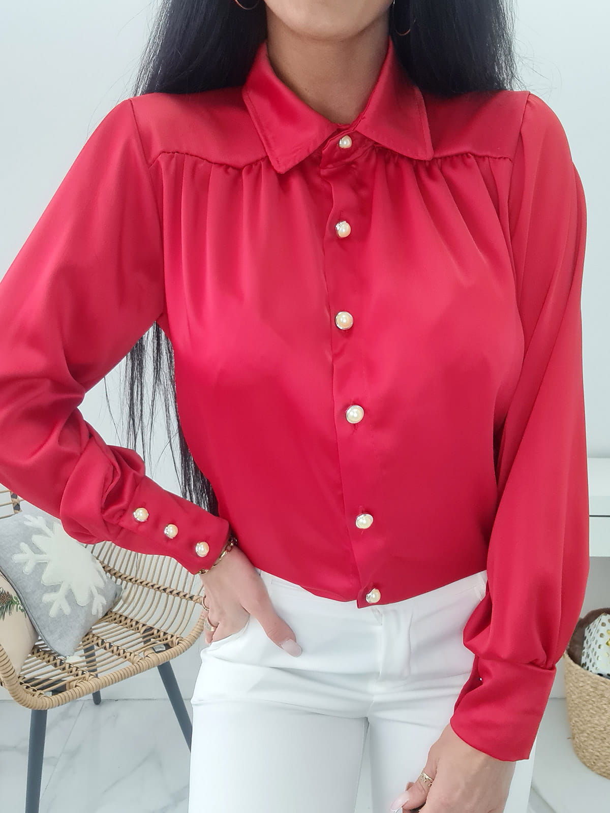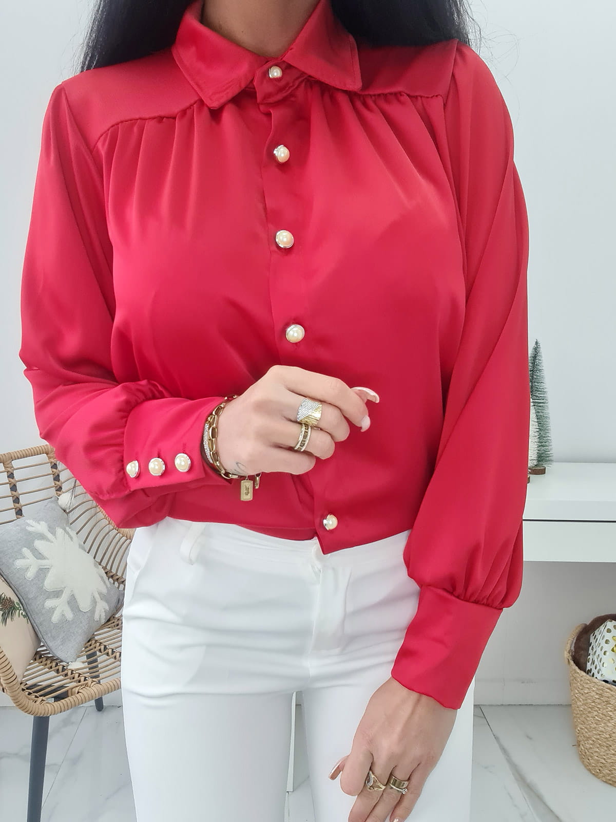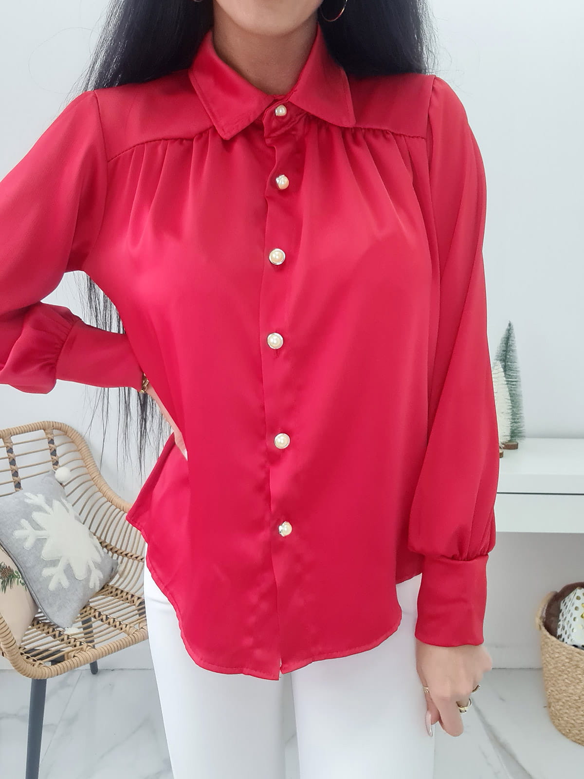 Piękna satynowa koszula Celebration na guziki - czerwona