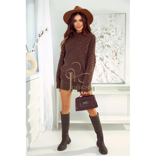 Sweter damski Elza z aplikacja bubbles polski producent J&K premium - czekolada brąz