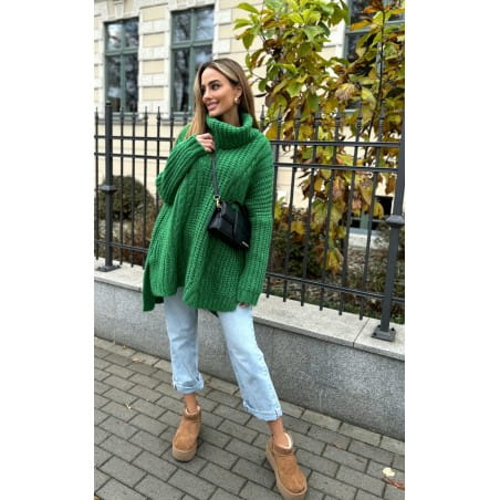 Sweter z golfem Sophia II plus size polski producent J&K premium - zielony