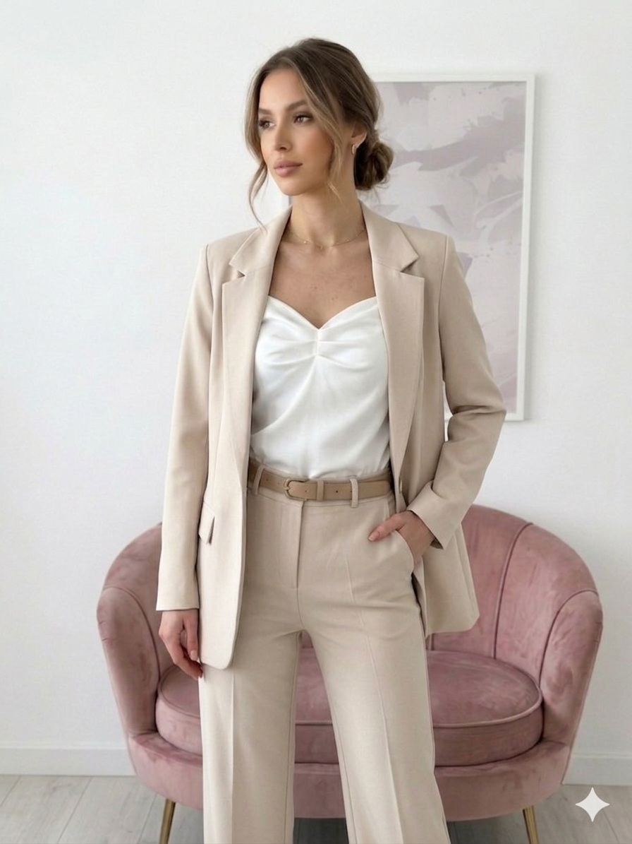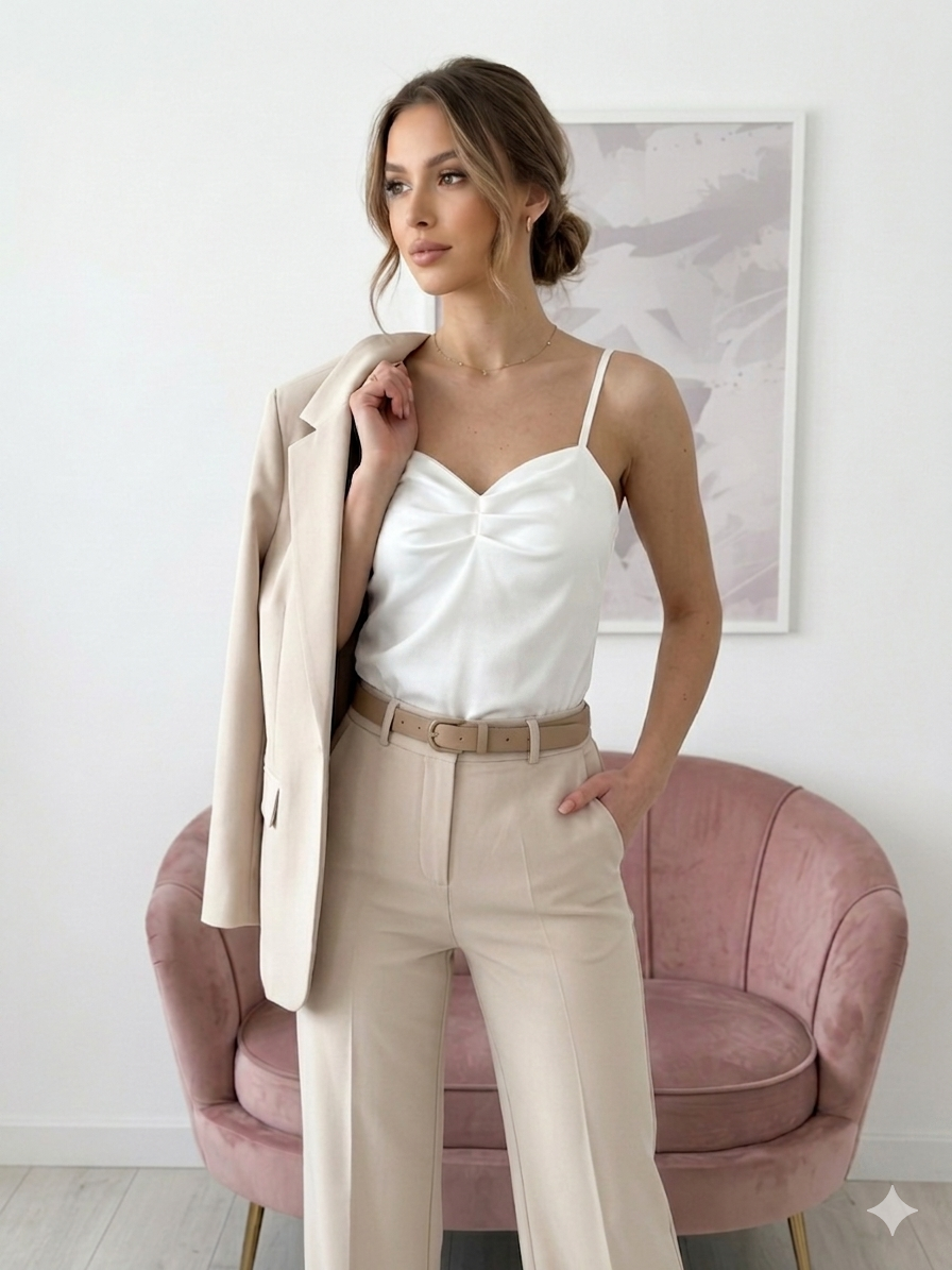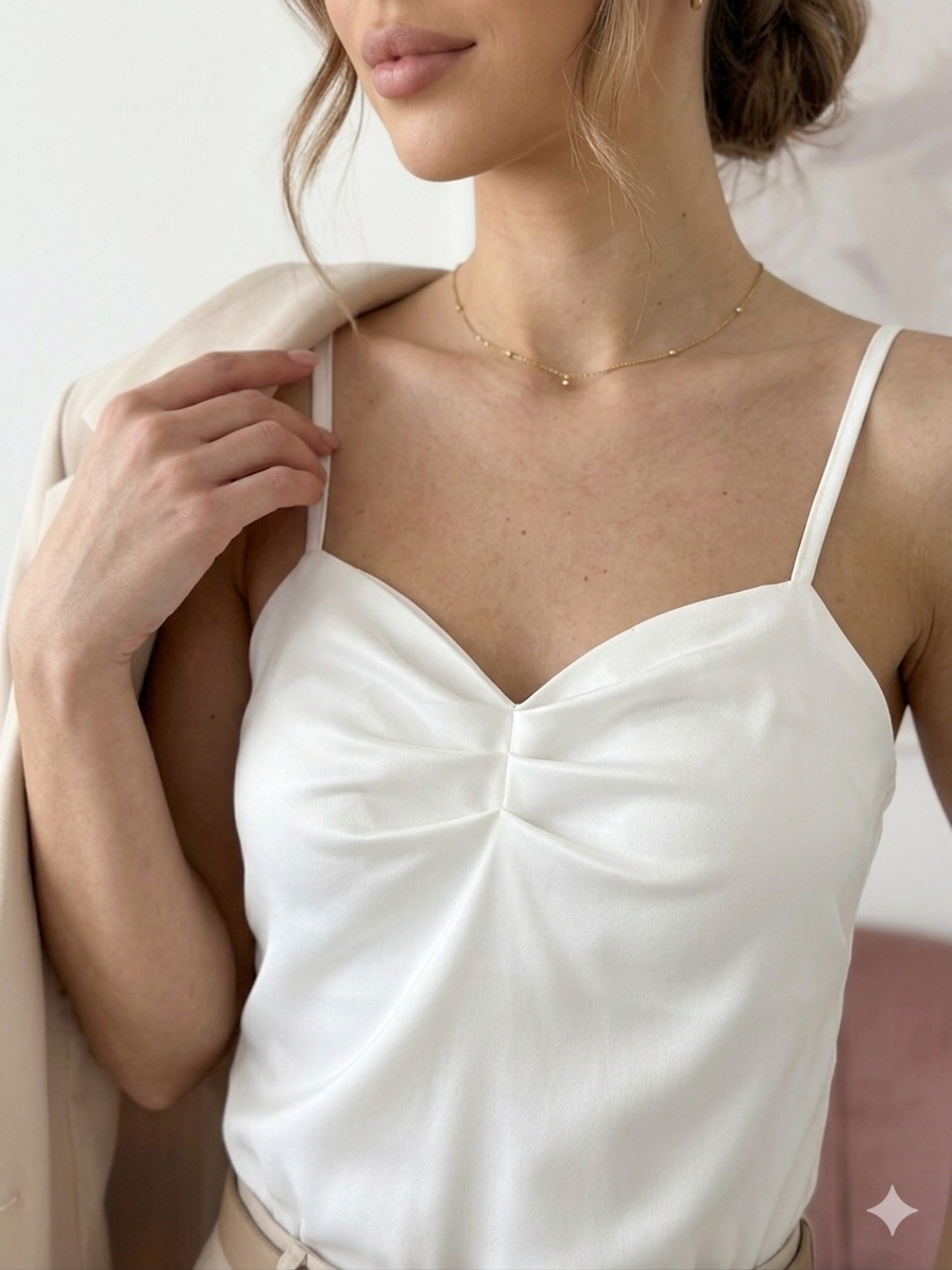 Klasyczny top bluzka na cienkich regulowanych ramiączkach. Idealna pod garnitur oraz jako baza do różnych stylizacji.
