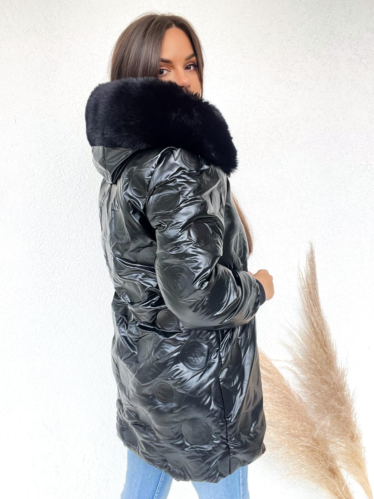 Zimowa puchowa kurtka płaszcz z kapturem i lisem Atlanta czarna